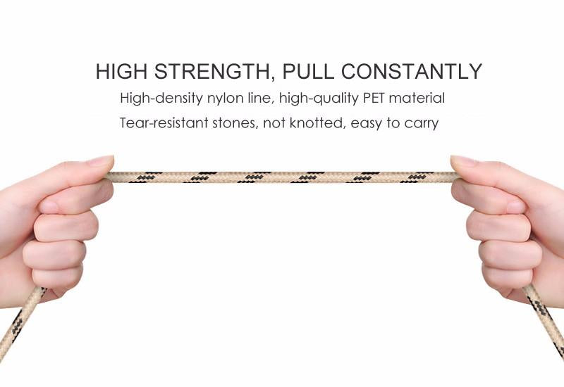 Tangle-free nylon braided cord with an aluminum connector.